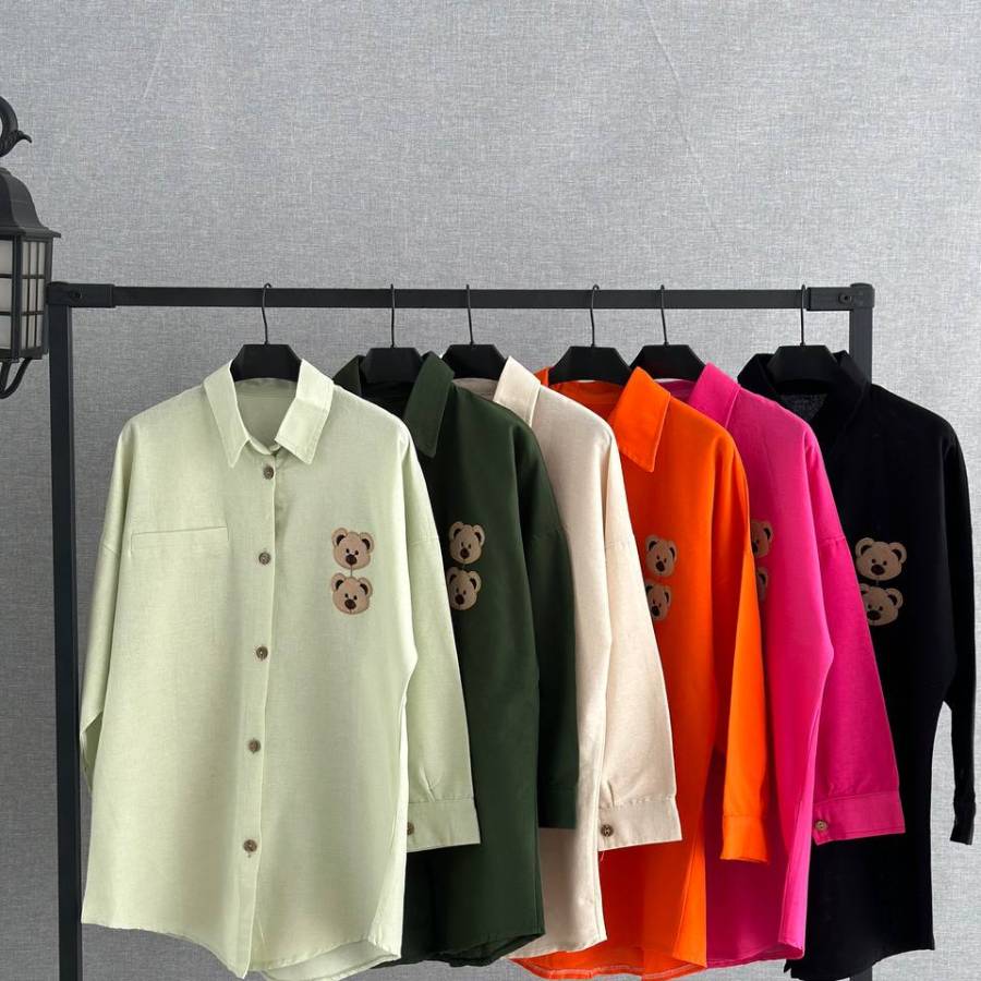 تیشرت لانگ پنبه چاپ طرح گلدوزی خرس