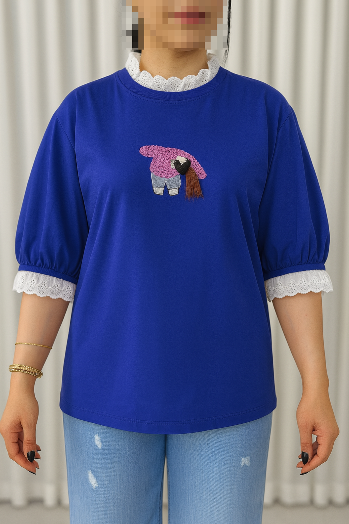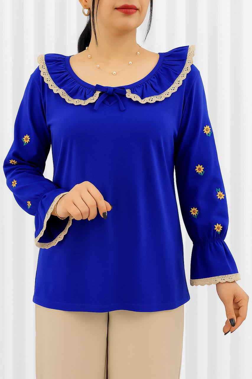 شومیز نخ پنبه گلدوزی آفتابگردون