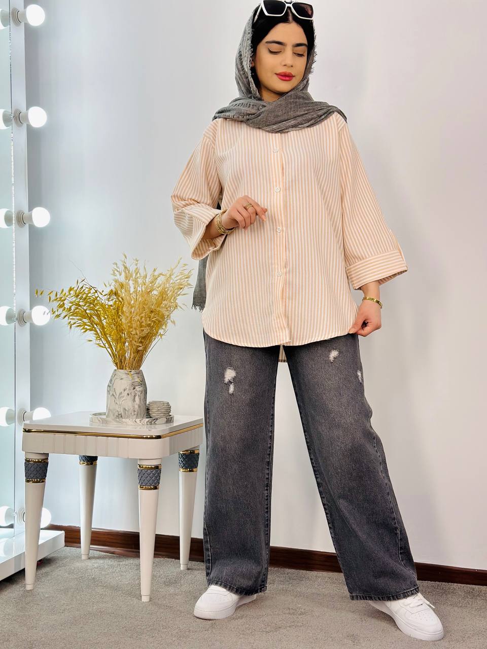 شومیز راه راه بیسکوییتی آتیه