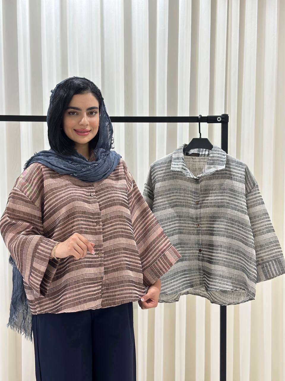 شومیز راه راه لینن اعلا