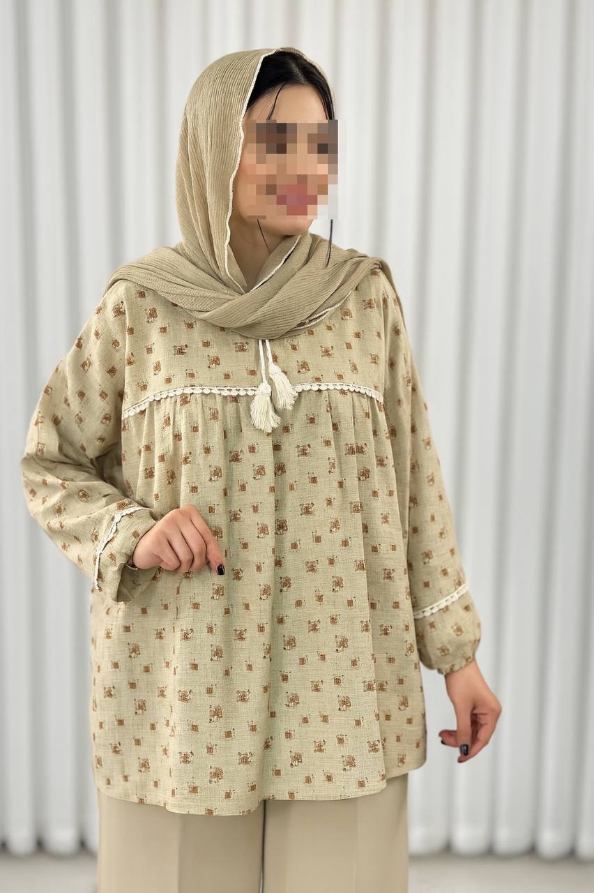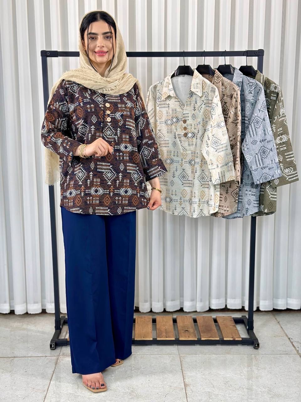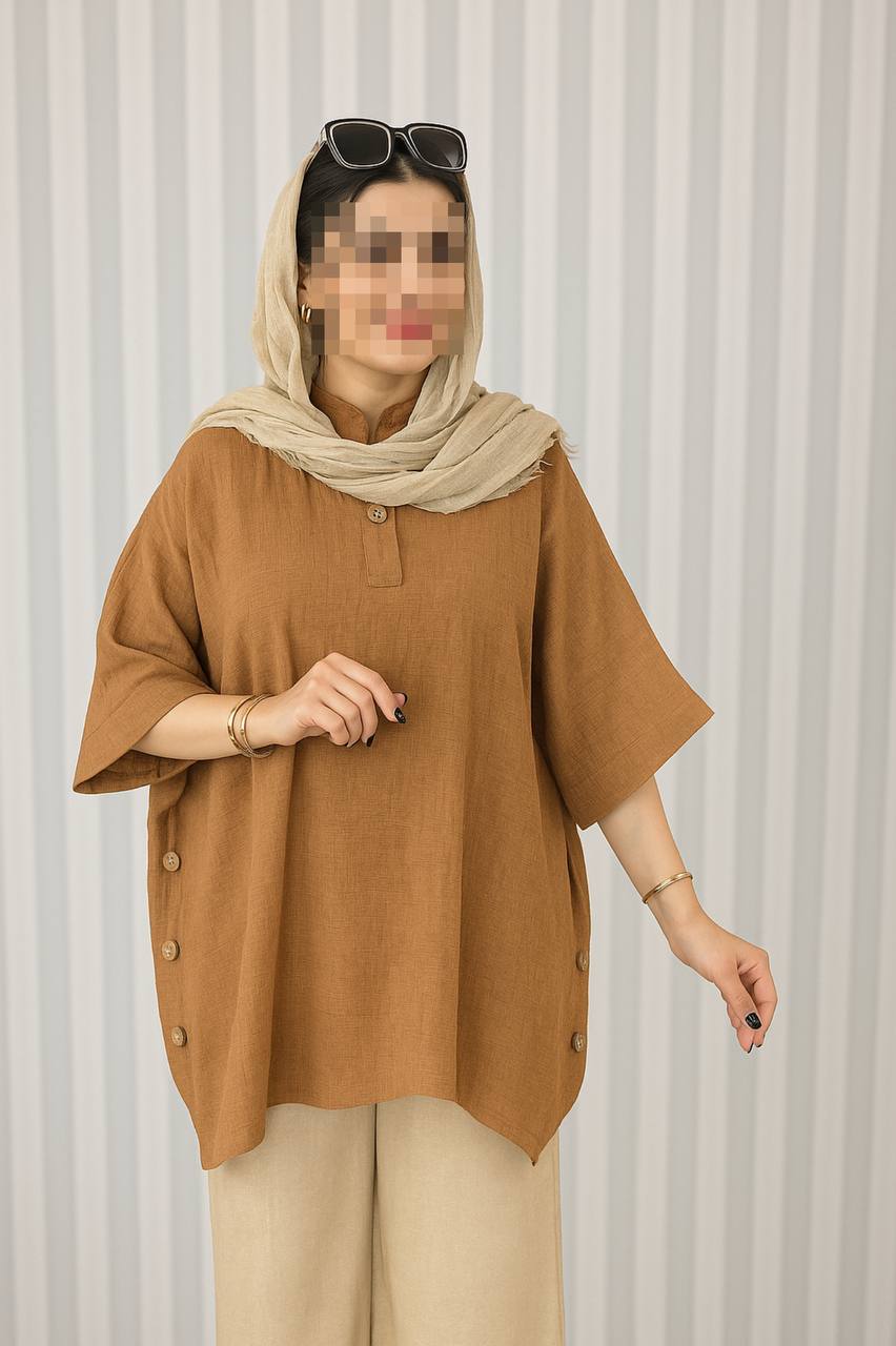 شومیز نخ پنبه گلدوزی آفتابگردون